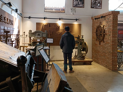 在講解員的帶領(lǐng)下,大家參觀了位于沙朗印刷廠生活區(qū)舊址內(nèi)的活字印刷博物館,館內(nèi)陳列了上世紀(jì)60年代以來報紙印刷設(shè)備,包括鑄字機(jī)、平裝機(jī)、木雕版、鉛字等實物,一件件歷史印記的老物件展現(xiàn)在眼前,仿佛把大家?guī)нM(jìn)那段艱苦奮斗、創(chuàng)業(yè)不息的崢嶸歲月。